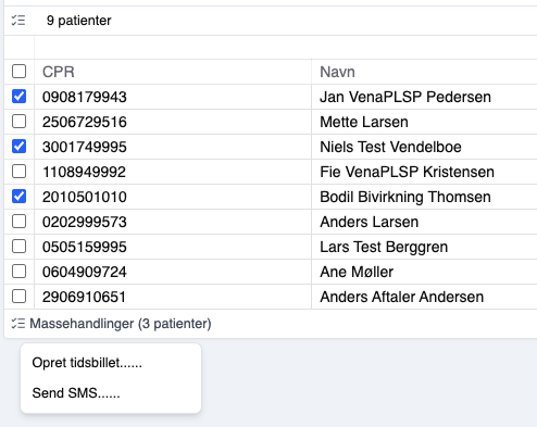 På populationslisterne er der mulighed for at lave massehandlinger på tværs af flere patienter i listen. Dette kan eksempelvis være oprettelse af tidsbillet